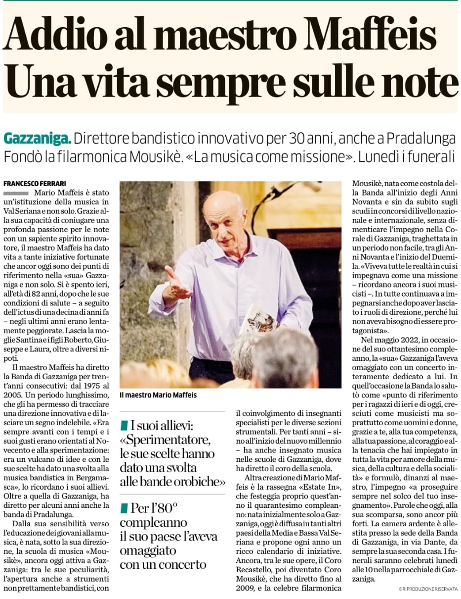 Ecco, questo è il caso del M° Mario Maffeis, un'istituzione musicale per la Val Seriana e, in generale, per la provincia di Bergamo.
